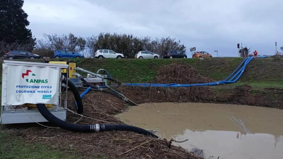 I nostri volontari sono impegnati da sabato e continuano H24, giorno e notte, per svuotare il canale dove confluisce tutta l'acqua dalle zone allagate del comune di Campi Bisenzio.